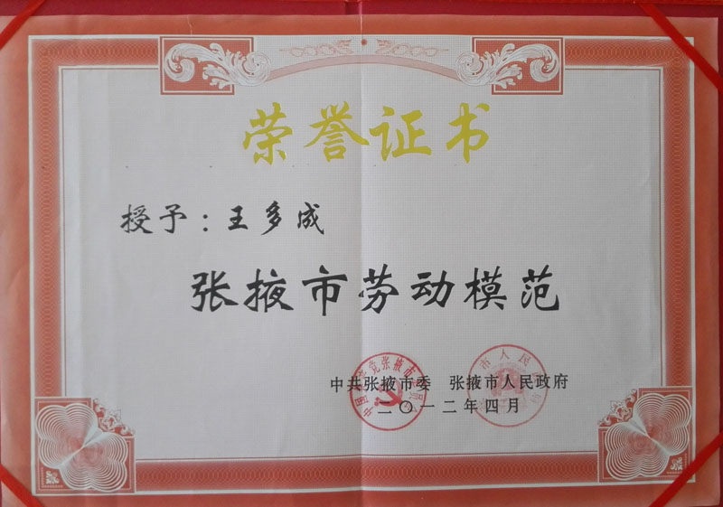 2014年榮獲張掖市政協(xié)三屆二次會…
