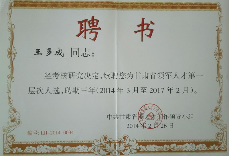 2014-2016年王多成甘州區(qū)專業(yè)技術…